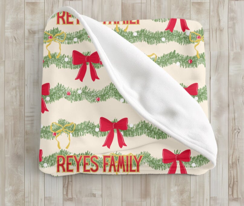 Personalized Christmas Garland and Bows Velveteen Plush Blanket - Soft Throw, Christmas Home Decor, Gift for Her, Customized Holiday, Christmas Tree