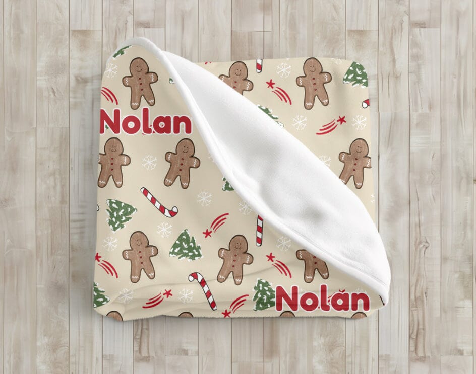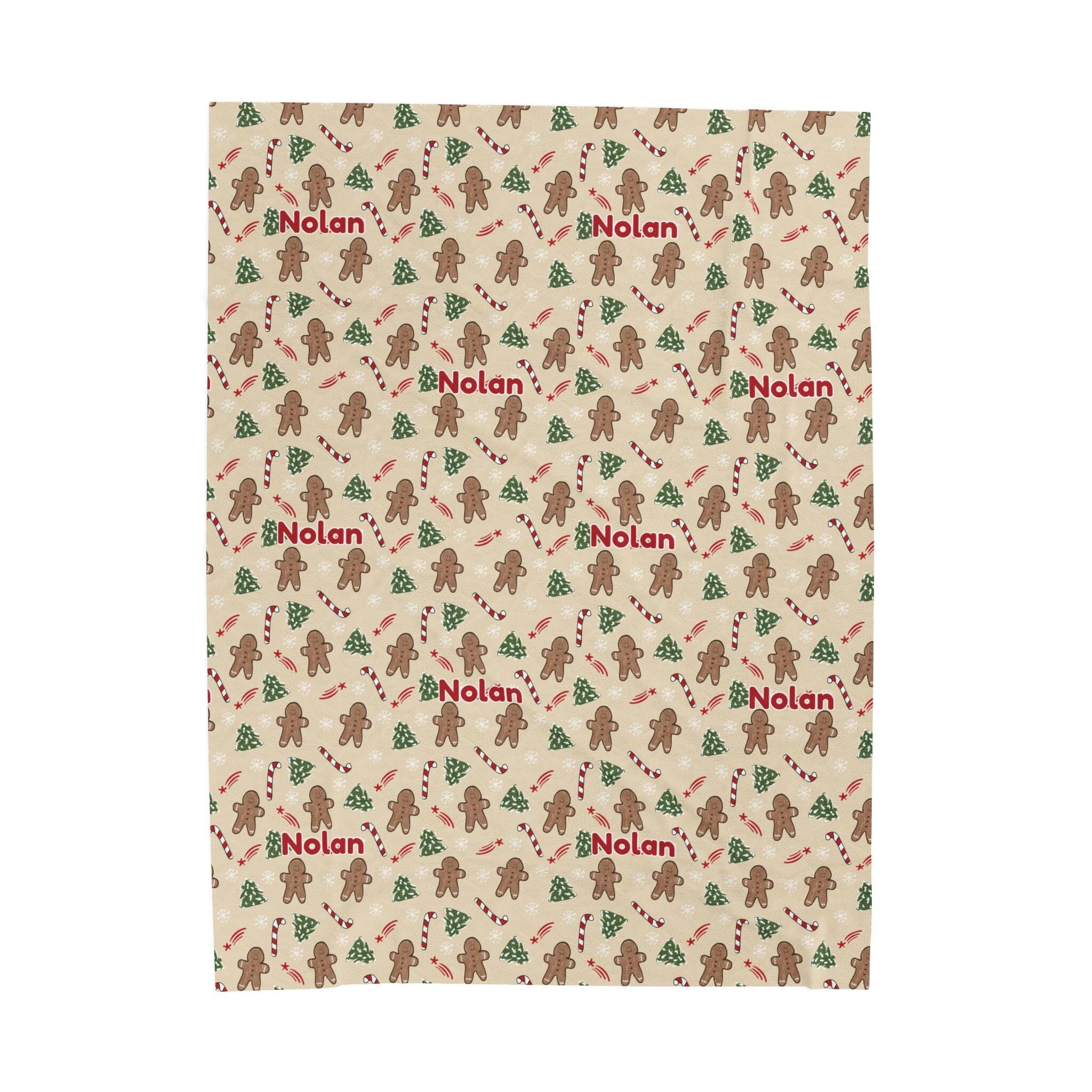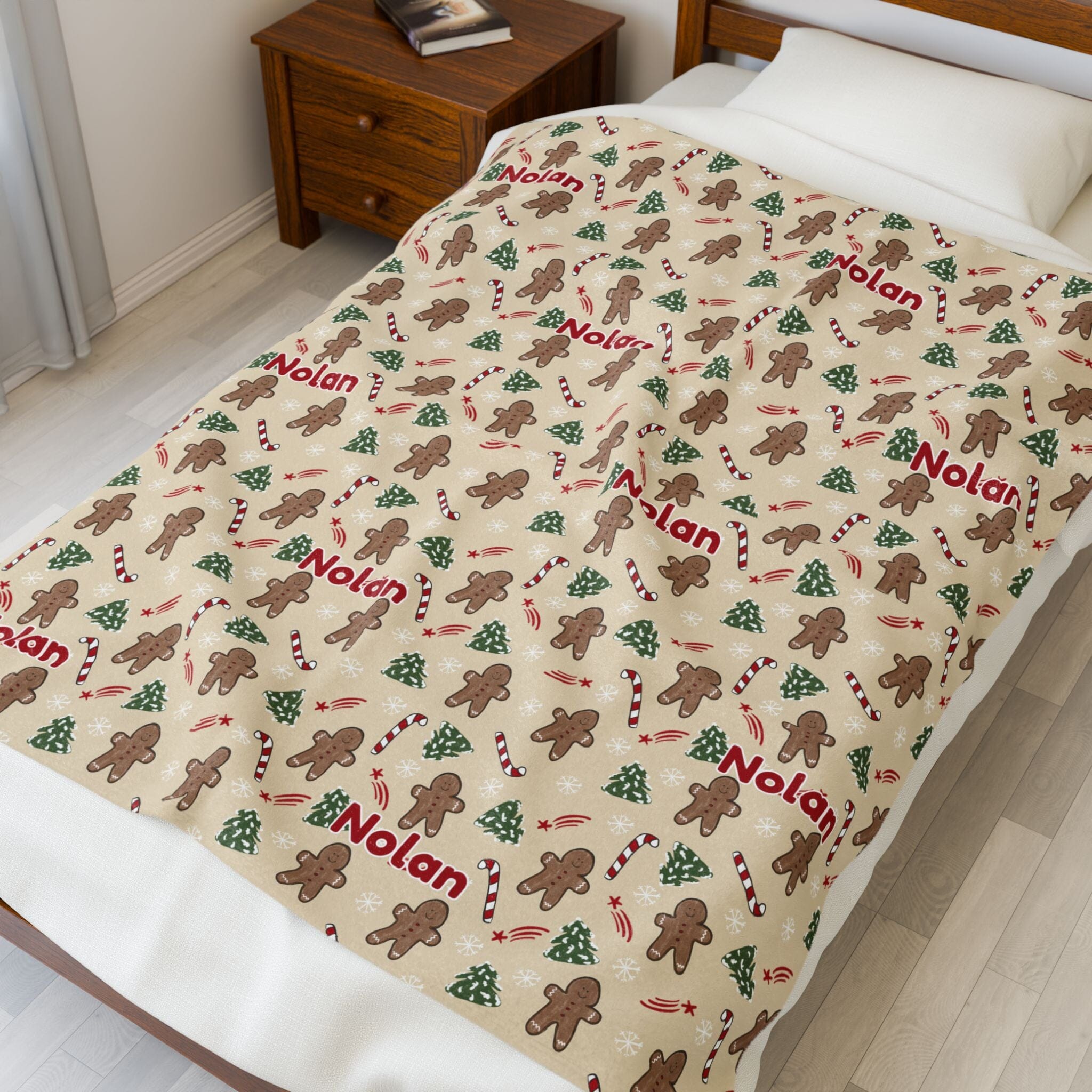 Personalized Gingerbread Man Candy Cane Christmas Velveteen Plush Blanket - Soft Throw, Christmas Home Decor, Gift for Him, Customized Holiday, Santa