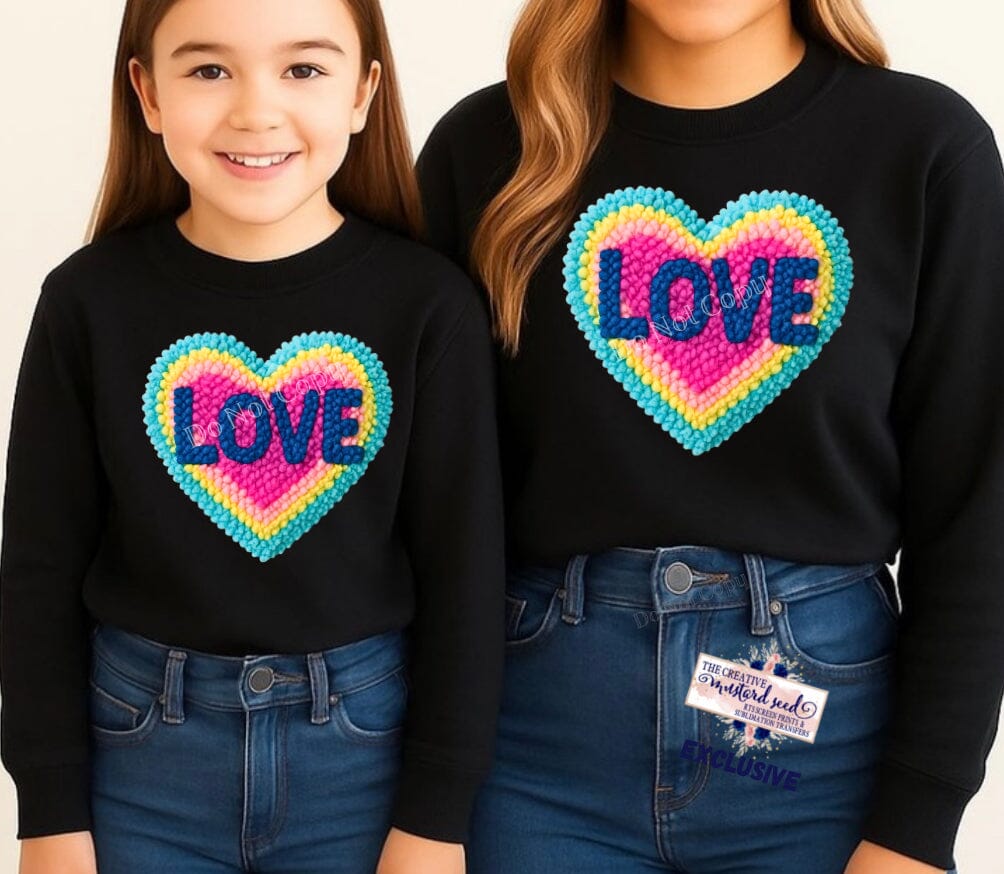 RTS Crochet Colorful Valentine Love Heart DTF Transfer |Adult Youth (325 HOT Peel)