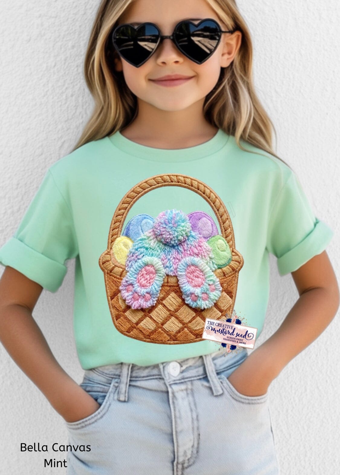 Easter Bunny Basket Faux Fur Embroidery DTF Transfer | Adult and Youth (325 HOT Peel)