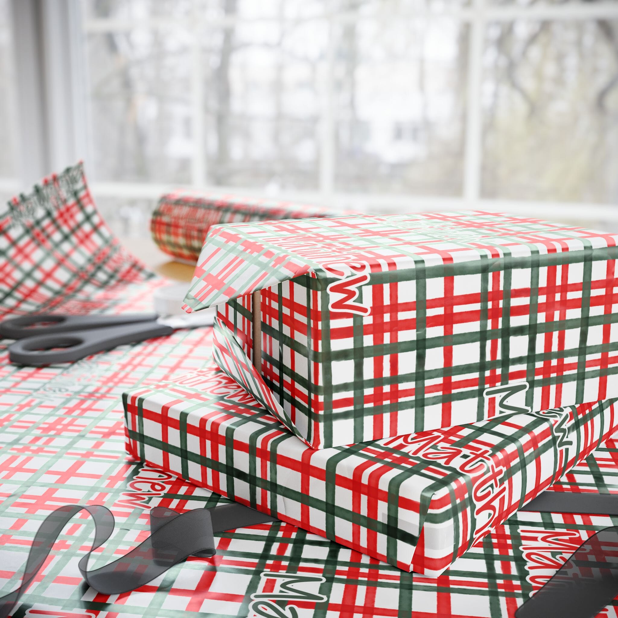 Personalized Christmas Plaid Doodle Wrapping Paper- Christmas Gift Wrap, Custom Name Holiday Gift Wrap, Seasonal Wrapping Supplies