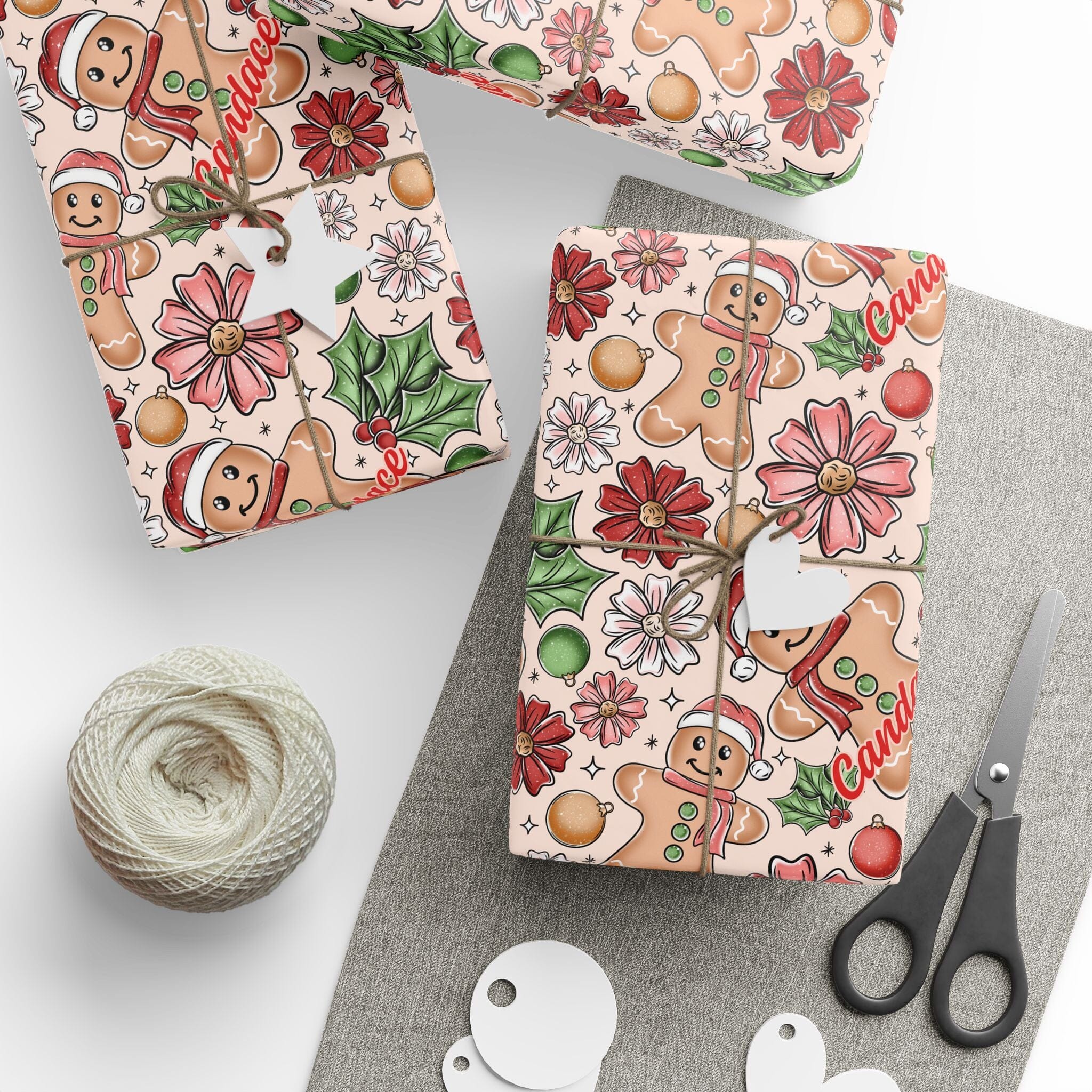 Personalized Preppy Gingerbread Christmas Wrapping Paper- Christmas Gift Wrap, Custom Name Holiday Gift Wrap, Seasonal Wrapping Supplies
