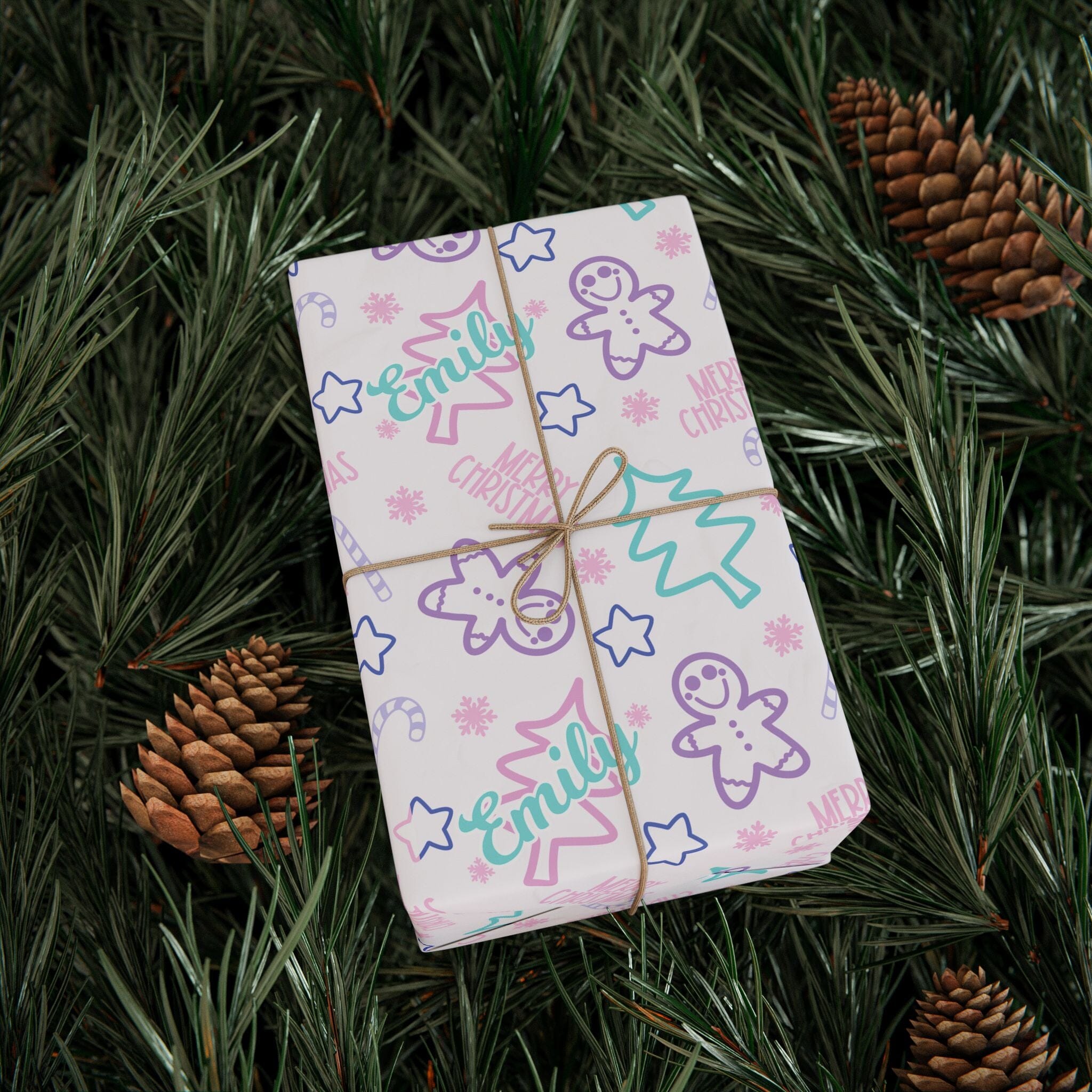 Personalized Preppy Gingerbread Christmas Wrapping Paper- Christmas Gift Wrap, Custom Name Holiday Gift Wrap, Seasonal Wrapping Supplies